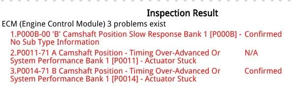 P0014 / P0011 Timing Over Advanced (Actuator Stuck)